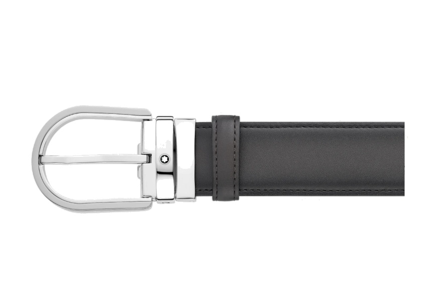 Кожаный ремень с пряжкой в форме подковы серого цвета 35 мм от магазина премиальных ручек Premium Pens в Благовещенске.